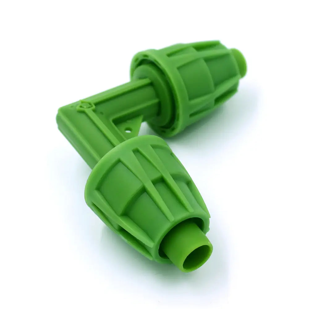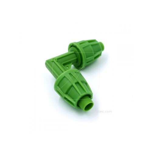 Con este empalme en forma de codo conseguirás conectar dos piezas de tubería de doble capa FloraFlex de 16-17 mm en un ángulo de 90 ° para alargar el alcance de tu riego. Este conector está pensado para 2 tubos de 16-17 mm. Su instalación es sencilla y rápida ya que se realiza por presión y no necesita ningún tipo de herramienta.