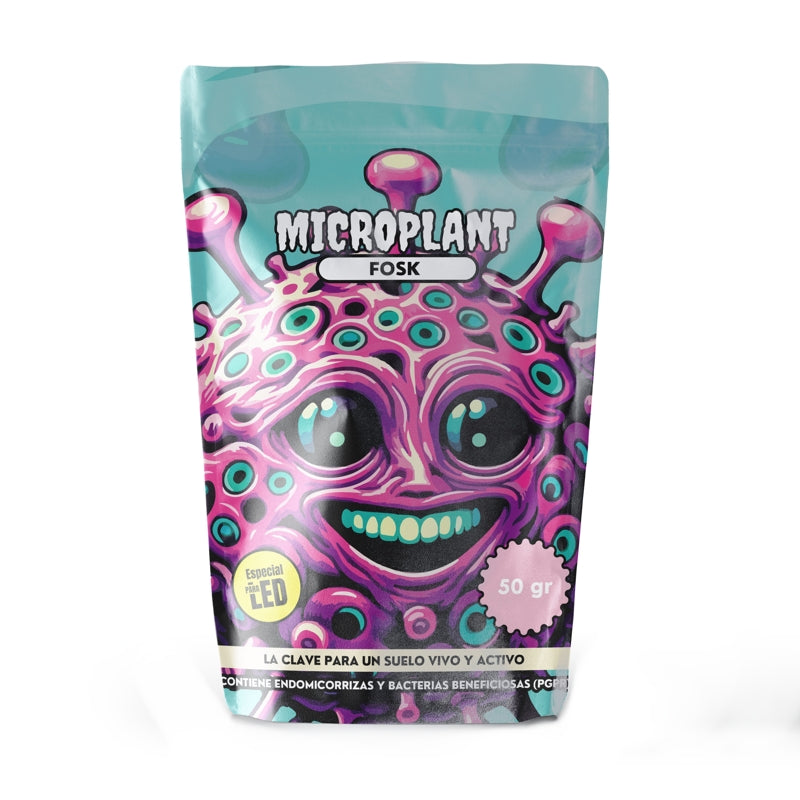 Microplant Fosk es un inoculante a base de hongos micorrícicos y rizobacterias promotoras del crecimientovegetal, que mejoran la asimilación del nitrógeno y solubilizan el fósforo y potasio, para ponerlos a disposición de la planta estimulando la oración y acelerando la cosecha.