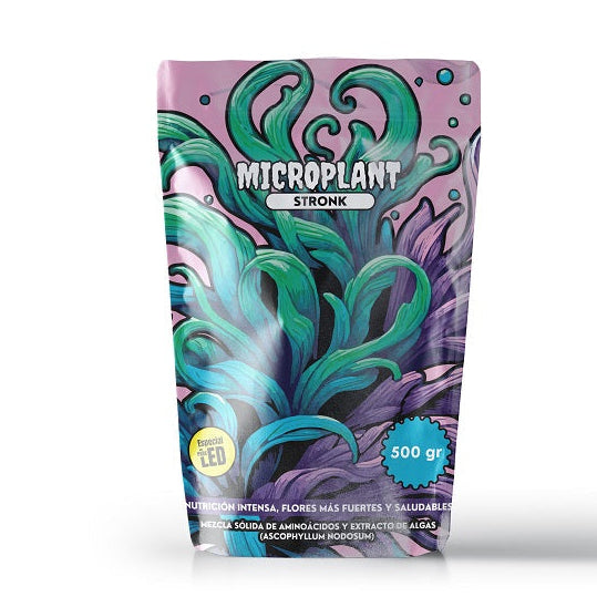 Microplant Stronk contiene un extracto puro de algas de la especie Ascophyllum nodosum obtenido mediante un proceso exclusivo de preparación en fresco que incluye: recolección manual, limpieza y un nuevo sistema de extracción en frío seguido de concentración a baja temperatura, dando como resultado un extracto líquido, completamente soluble.
