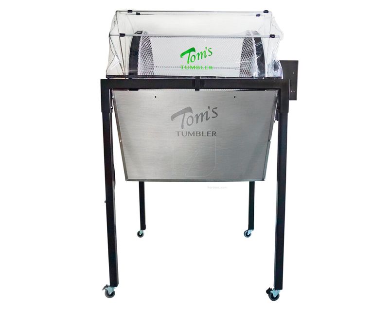 La Peladora TTT 3000 de Tom’s Tumbler es el modelo más grande de todas las peladoras de la marca. Puede procesar hasta 45 kg/hora de flor seca (100 lbs). Cada 3-5 minutos puede pelar entre 7 y 8 kg (15-17 lbs). Los resultados obtenidos durante un día de uso de esta peladora, corresponden al trabajo de 400 personas.