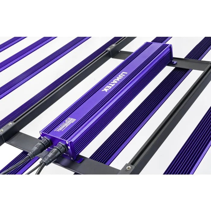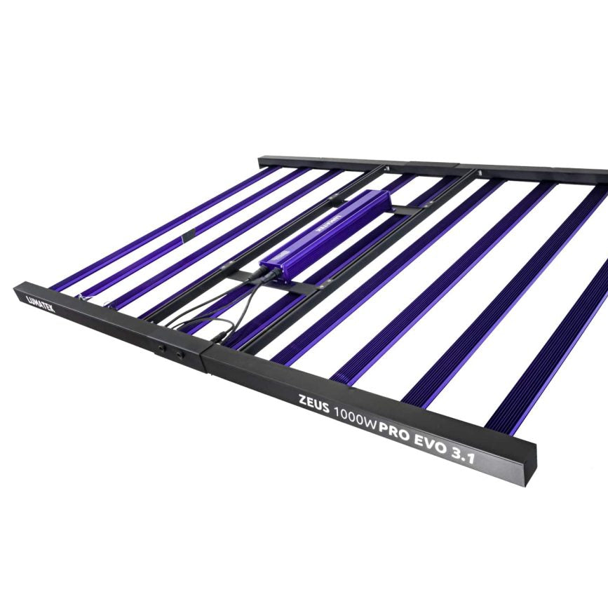 El Zeus 1000W Pro EVO 3.1, que proporciona la mayor área de cobertura rectangular del mayor sistema de barras lineales del mercado, está diseñado para crear la mejor distribución de luz de espectro completo para cultivos a gran escala. El modelo Lumatek Zeus 1000W Pro EVO 3.1 LED de especificación más alta es una luminaria de barra multi-luz lineal que produce niveles extremadamente altos de PPF de 3125 μmol/s y una eficacia de 3.1 μmol/J.